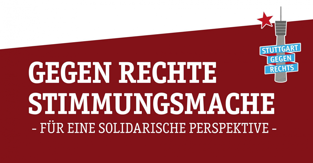 Die Gegendemonstration von Stuttgart gegen Rechts findet um 12:30 Uhr am Marktplatz statt. Wir finden es wichtig, für Grundrechte auf die Straße zu gehen, wenngleich man das Risiko einer Infektion abwägen muss. Wir stehen deshalb morgen nicht in großer Zahl, dafür aber in Gedanken auf dem Marktplatz bei allen Demonstrierenden.