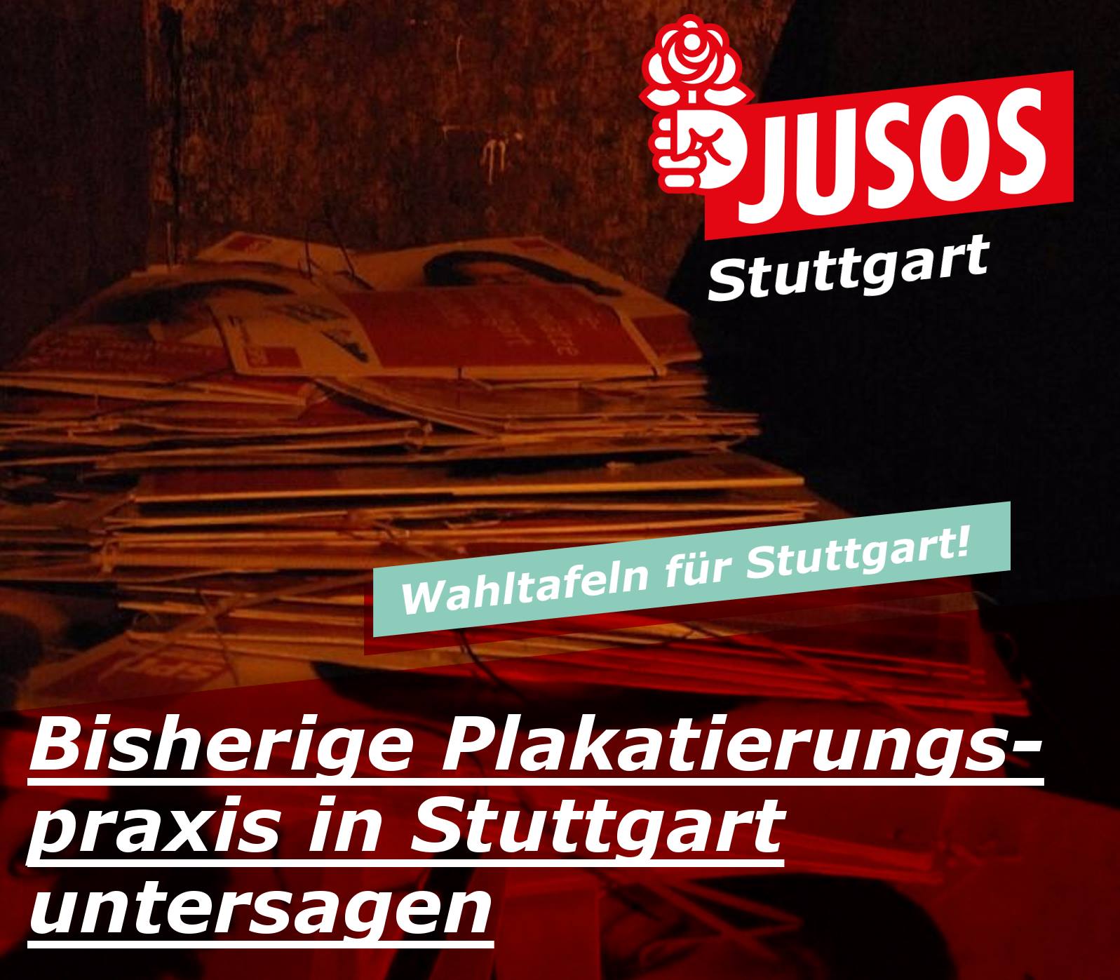 Auf der Jahreshauptversammlung der SPD Stuttgart am 17.03.2018 im Willi-Bleicher-Haus des DGB konnten sich die Jusos Stuttgart mit ihrem Antrag zur Abschaffung der bisherigen Plakatierungspraxis durchsetzen. Sie forderten stattdessen die Aufstellung zentraler Wahltafeln durch die Kommune, an denen die antretenden Parteien bzw. Kandidierenden ihre Plakate (etwa nach dem Prinzip der abgestuften Chancengleichheit) anbringen dürfen. Hintergrund [...]