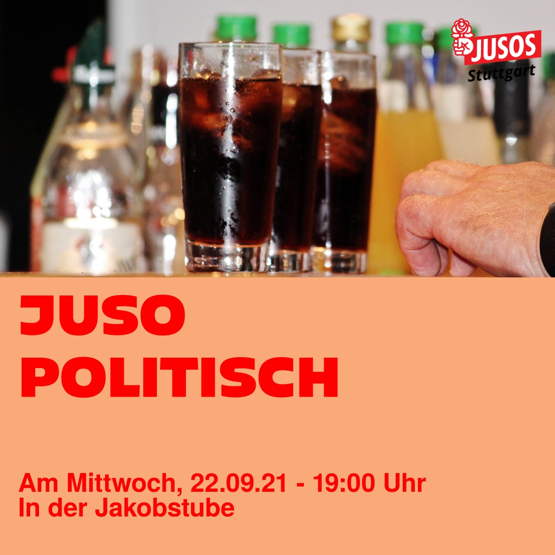Mehr erfahrenUm 19.00 Uhr (wieder wie gewohnt um 19.00 Uhr (nicht wie in der Sommerpause!)) findet dieses mal aber an einem Mittwoch der PoliTisch in der Jakobstube (Jakobstraße 6 in Stuttgart - Haltestelle Rathaus) statt! Komm vorbei und sprich mit uns ungezwungen über alles, was dich gerade beschäftigt.