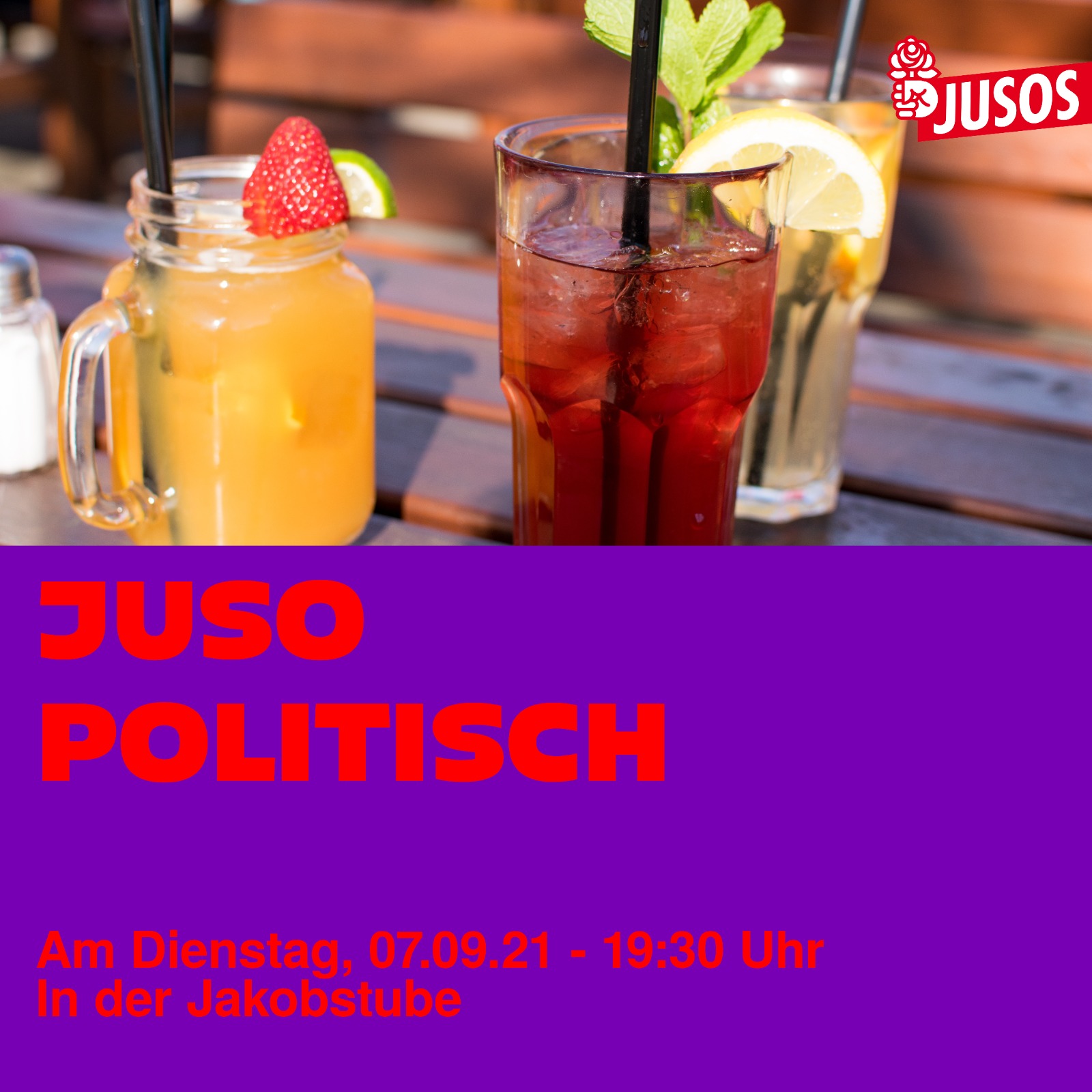 Mehr erfahrenAbends noch nichts vor? Dann kommt doch einfach um 19:30 Uhr zu unserem PoliTisch in der Jakobsstube vorbei! Egal, ob neu mit dabei oder schon länger bei den Jusos: Unser Stammtisch ist eine gute Chance, um sich in lockerer Atmosphäre miteinander auszutauschen und um sich persönlich besser kennenzulernen. Kommt einfach in die Jakobsstube und diskutiert [...]