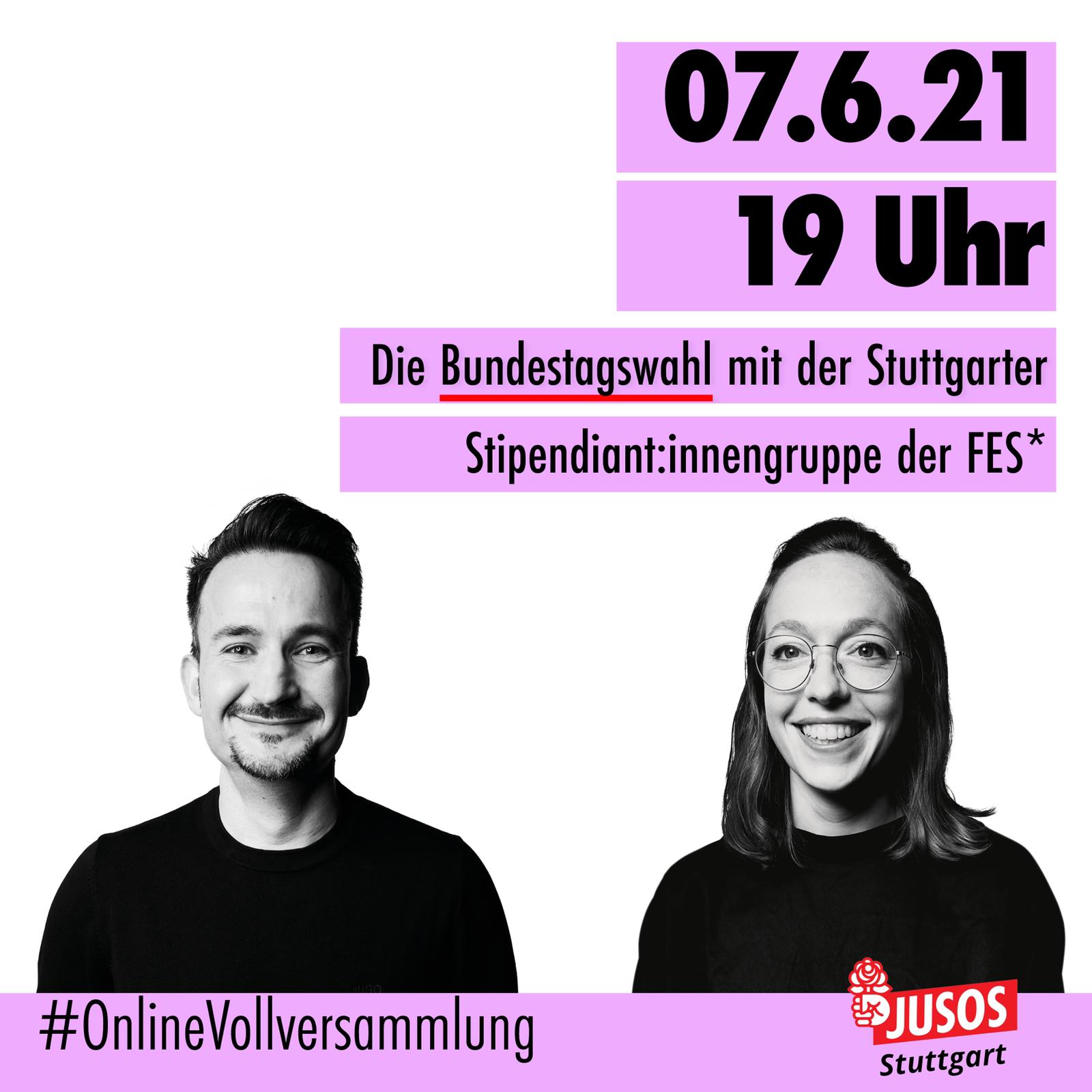 Mehr erfahrenAm 26. September ist die Bundestagswahl und in Stuttgart haben wir von der SPD zwei wundervolle Kandidierende: Lucy Schanbacher und Dejan Perc. Gemeinsam mit der Stipendiat:innengruppe Stuttgart der Friedrich-Ebert-Stiftung (FES) wollen wir den Abend am 7. Juni der Bundestagswahl widmen und mit Lucy und Dejan ins Gespräch kommen. Wir würden uns sehr freuen, wenn ihr [...]